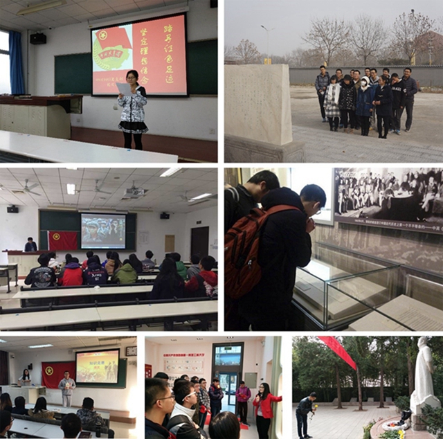 各基层团支部开展了形式多样的团日活动,其中本科生09011603团支部以“追寻红色足迹,坚定理想信念”为主题进行了爱国演讲,并组织观看红色电影,交流心得体会,一起回顾革命岁月。09011604团支部组织青年团员参观良乡烈士陵园,瞻仰烈士墓碑,感悟红色精神,并开展了相关知识竞赛,共读一本书等活动。09411501团支部参观了军事博物馆并召开“我与社会主义核心价值观”主题班会,弘扬了中华民族传统美德,爱国主义也深入每个人的心目中。09011605团支部参观了卢沟桥和抗日战争纪念馆,让团员加深了对历史的认识和铭记,更加深入的培养了爱国主义情感。 09221301团支部组织所有团员参观校史馆,进一步了解437437必赢国际网址的光荣历史,感受那个战火纷飞的年代,与祖国同呼吸共命运的理工大学师生的艰苦奋斗精神;09411301团支部组织班级同学学习习近平总书记纪念长征胜利八十周年讲话的视频,并组织团员们参加红色知识竞赛;09211401团支部组织全体团员前往万安公墓的李大钊烈士陵园,并组织团员们默哀鲜花,参观“李大钊烈士革命事迹陈列室”,了解李大钊同志一生英勇的革命事迹。