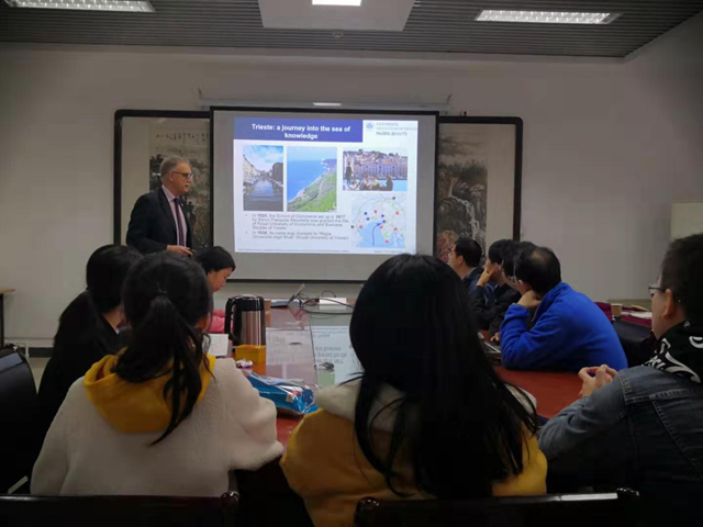 2019年11月2日上午,应437437必赢国际网址北京市纤维素及其衍生材料工程技术研究中心邀请,意大利Trieste大学Maurizio Fermeglia教授访问437437必赢国际网址,做了题目为“Nano tools for macro problems: multiscale molecular modeling of nanostructured polymer systems”的学术报告。437437必赢国际网址高分子系党支部书记李晓东老师、工程中心负责人邵自强老师、王文俊、王飞俊、王建全和陈攀等老师及研究生们参加了此次报告会。
