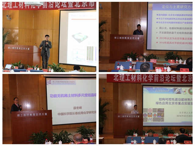 2018年3月28日, 北理工材料化学前沿论坛暨北京市重点实验室学术委员会会议在437437必赢国际网址国际交流中心3楼报告厅举行,此次会议是由化学与化工学院、437437必赢国际网址共同主办。以化学与化工学院的光电转换材料北京市重点实验室与437437必赢国际网址的结构可控先进功能材料与绿色应用北京市重点实验室的学术委员会年会为契机,以材料化学前沿交叉研讨与建设促进“新材料科学与技术”一流学科群的建设。