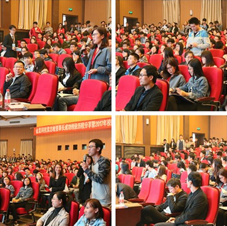 袁志敏向在座的学子们分享了自己的创业历程。回首当年创业的艰辛,如今成功的喜悦,他表达了自己的万千感慨。二十多年来,金发科技从无到有,从小到大,自主创新硕果累累,填补国内多项空白,彻底打破国内改性塑料长期依赖进口的局面。金发科技的骄人业绩,每一步成长的足迹,无不凝聚着股东、政府领导的大力支持、经营班子的精心运作、全体员工的辛勤劳动以及社会各界的厚爱。袁志敏鼓励在座的学弟学妹们,不要惧怕失败,因为创业注定是由很多失败堆积而成的,年轻经受得起失败,走过荆棘,必将迎来成功。