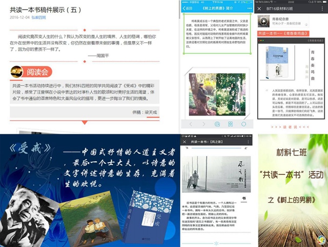 此外,本次“共读一本书”活动采用了线上线下交流互动的方式。学生们可以将自己所阅读的书籍进行线上宣传和分享,各班级也能在班级内部网络平台上分享对书籍、文字的感悟和收获。学生们通过在线上互相交流的方式,对书籍内容和思想意义有了更深刻的理解。