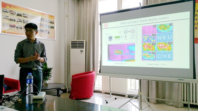 2018年6月14日下午,应我校437437必赢国际网址张爱英副教授邀请,美国东北大学(Northeastern University)侯思超博士来到437437必赢国际网址交流访问,并在5号教学楼502-2会议室做了题为 “Photo-thermally driven graphene-oxide doped phase change actuator for refreshable haptic devices” 的学术报告。