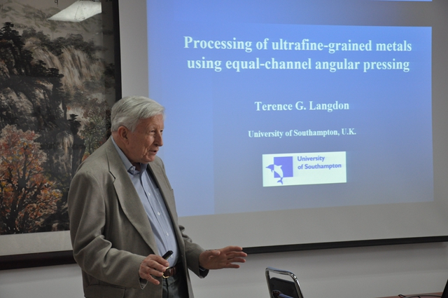 4月10号下午,在王迎春副教授的主持下,Langdon教授在5-502-1会议室做了题为“Processing of ultrafine-grained metals using Equal-channel angular pressing是报告,详细介绍了剧烈塑性变形等通道角挤压(ECAP)技术的研究进展和学术成果,并与参会师生进行了深入的交流和讨论。