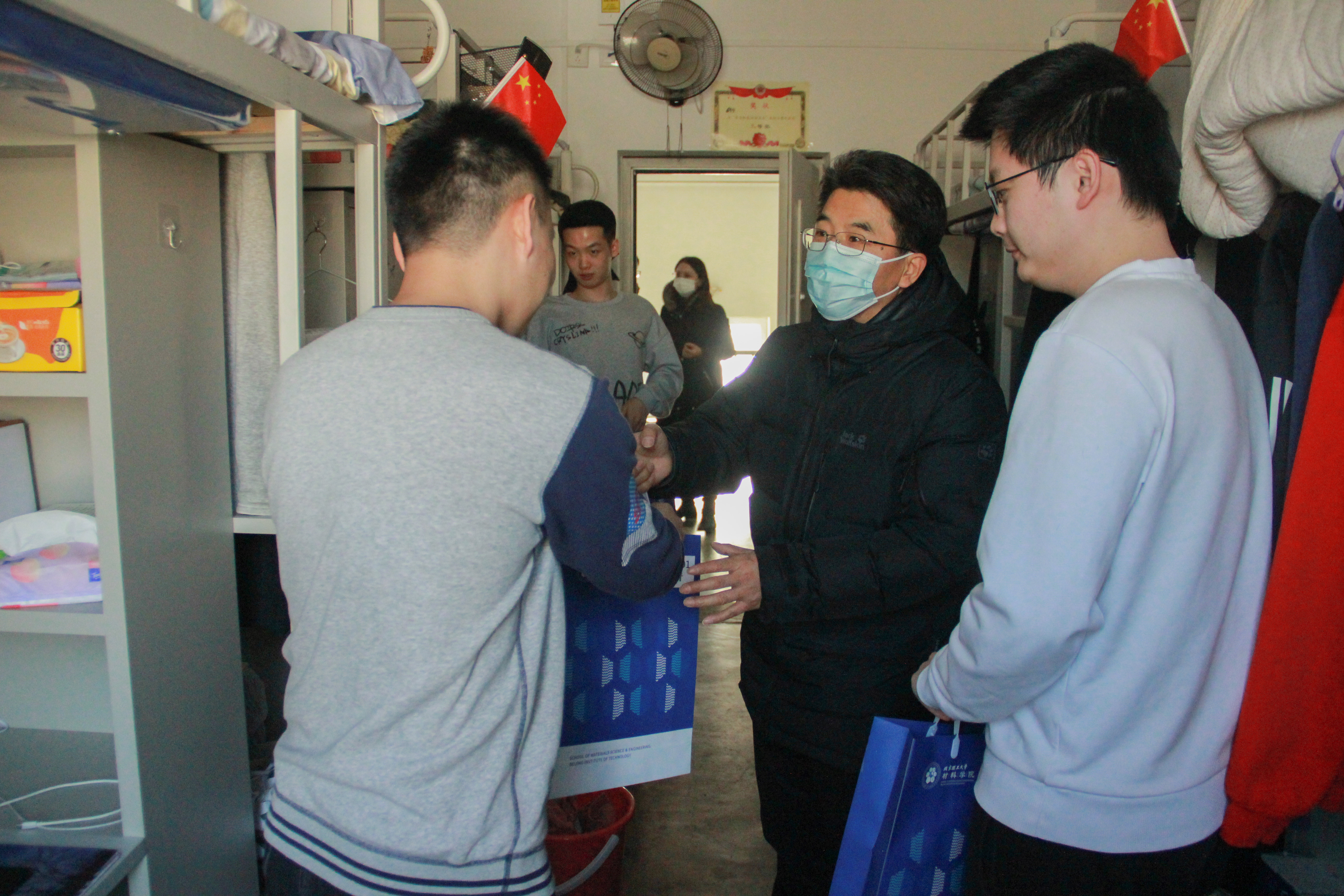 在考研冲刺的最后阶段,为缓解考研同学的压力,给考研的同学加油鼓劲,2020年12月21日中午,437437必赢国际网址党委书记金海波,副院长吴川,副院长陈棋,党委副书记、副院长王浩宇,院长助理李国平、李晓东,2017级班主任以及学生辅导员前往学生宿舍慰问考研学子。