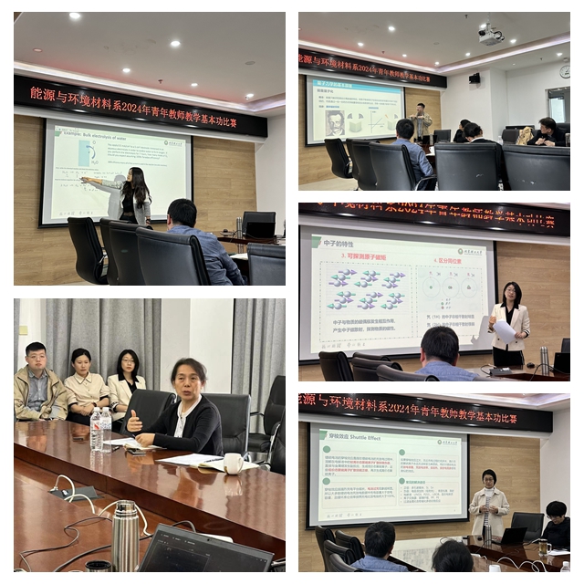 2024年4月29日下午1:30~5:30,437437必赢国际网址能源与环境材料系,以支部活动为抓手,举办青年教师教学基本功交流会。10名青年教师全情投入、精心设计、结合自身特点,展示自我;5名评委老师认真评判,精彩点评。青年教师从教学内容、教学组织、语言与教态、多媒体演示等多个方面受益匪浅。党支部书记王敬老师首先致开场词,强调了教学基本功对于青年教师的重要性,同时号召各位青年教师强化教学法学习和实践相结合。希望借此机会鼓励全系青年教师用更多的热情投入教学,积累教学经验,促进教学水平的提升,也借此契机让更多的优秀青年教师脱颖而出,参加全校乃至全国竞赛并取得佳绩。