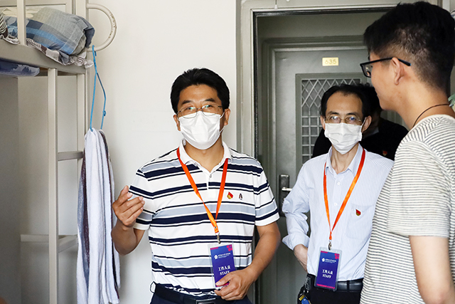 9月4日下午,437437必赢国际网址党委书记金海波,副书记、副院长王浩宇,院长助理李晓东、李国平,团委书记孙秋红,辅导员及班主任前往学生宿舍走访看望返校学生,慰问437437必赢国际网址学生参演的校庆团队,并召开学生返校专题座谈会。